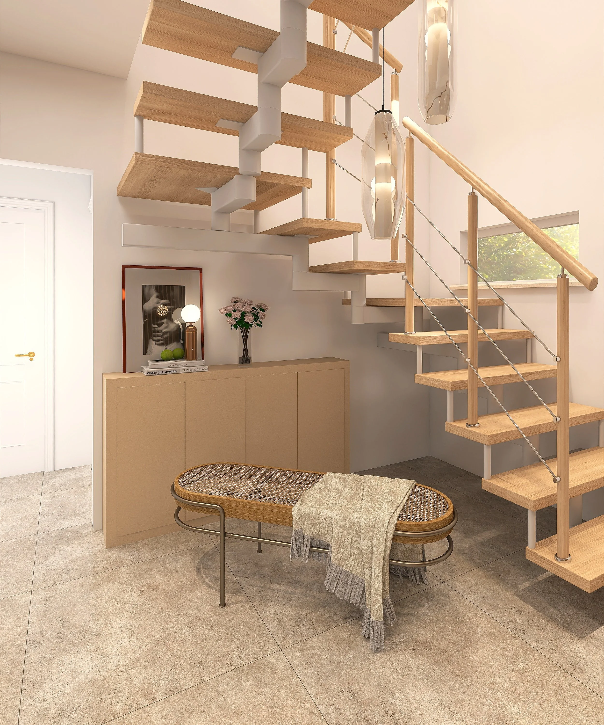 Dieser Eingangsbereich empfängt die Familie vom Bodensee und ihre Gäste mit warmen Farben und klarer Struktur. Funktion trifft hier auf Eleganz - für einen Alltag, der leicht und wohnlich beginnt.